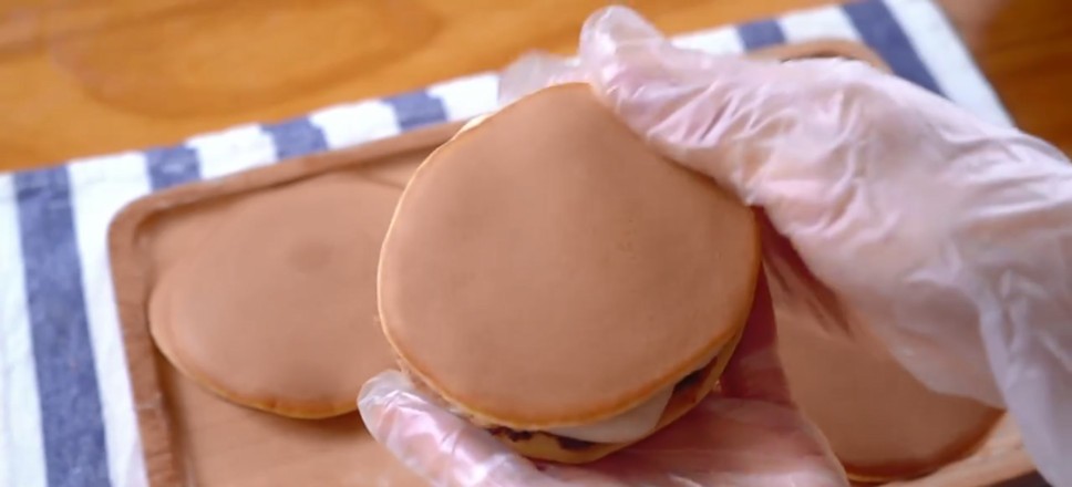 在其中一面中涂上红豆馅,再盖上另一片就完成了
