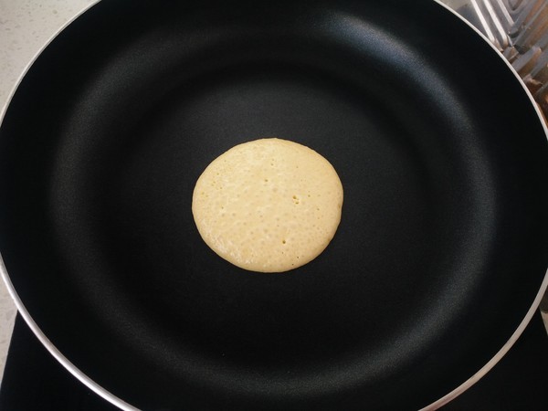 平底锅用小烧热,盛一小勺入锅内煎至底部金黄即可铲出