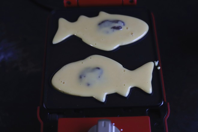 鲷鱼烧模具里可以提前刷一层薄薄的黄油,也可以不刷,将面糊先倒一部分在模具里,然后挤上红豆沙馅,然后再浇上一部分面糊,这些面糊要盖住红豆馅浇下去,刚好流满模具就可以了。