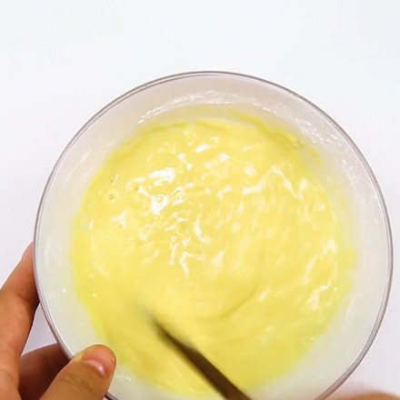 将鸡蛋液,细砂糖,蜂蜜,盐加入干净的容器中,用手动打蛋器搅打均匀,再筛入面粉,用打蛋器把面糊搅拌成无颗粒的顺滑状态。