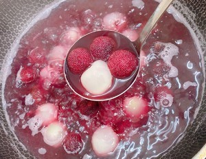 冷水下锅放杨梅煮开下冰糖,再煮五分钟把颜色煮出来,下荔枝煮两分钟即可!