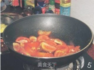 锅内再倒少许油,放入几粒蒜后把番茄倒入锅内。