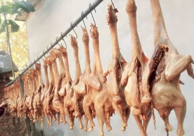 腌制完成后,将整鸡用风筒吹干,过程中每隔一小时用蜂蜜刷一次表皮,总共风干24小时