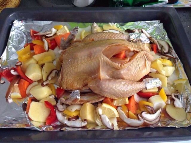 将整鸡放入烤箱烤制一小时