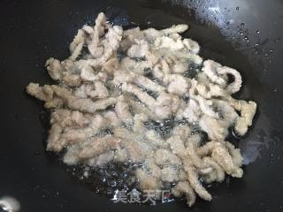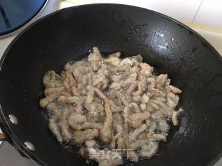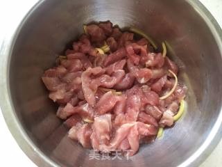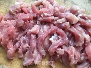 将肉片切成长条备用,不要切太细,炸过之后容易变柴。