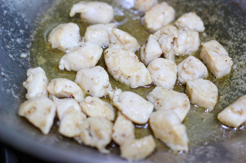 鸡胸肉里加少许盐、淀粉、料酒和黑胡椒搅拌均匀至上劲并腌制一会