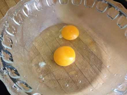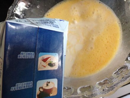 将鸡蛋敲在大碗里,用手动打蛋器打散;