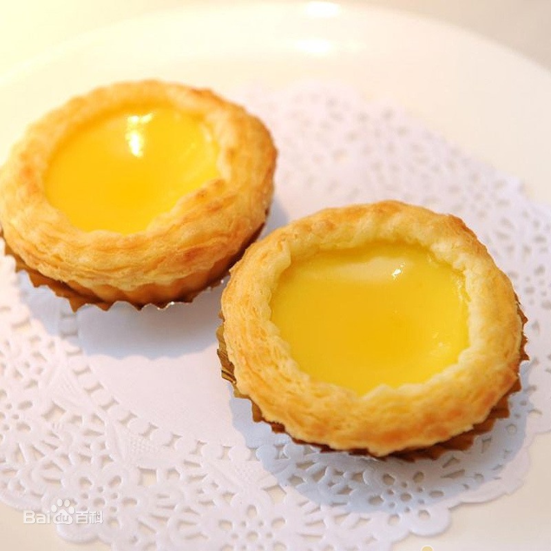 形状:烤出的蛋挞外层为松脆之挞皮,内层则为香甜的黄色凝固蛋浆。 颜色:金黄色 口感:香甜醇厚,松软可口,美味娇嫩