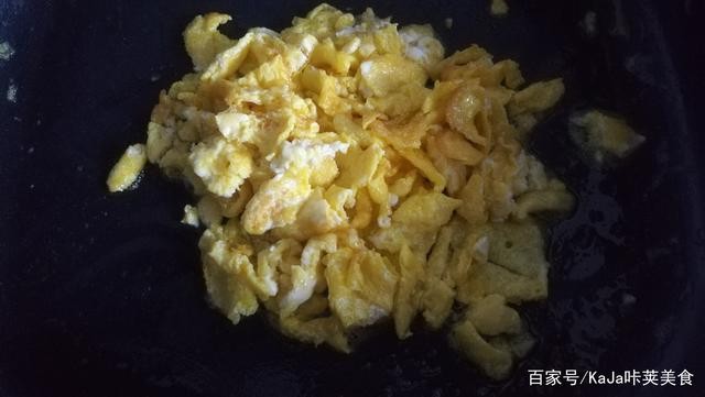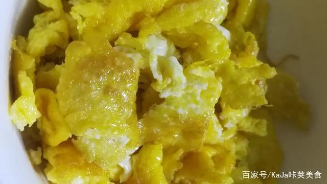 鸡蛋炒熟后,先暂停关火将熟鸡蛋放入碗中备用。