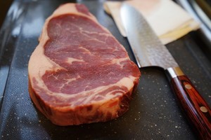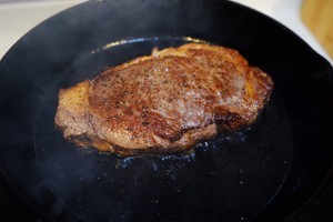整个铸铁锅进烤箱,根据厚度和烤箱火力的区别,10-15分钟,完成。 好的牛排仅用盐就足够美味。