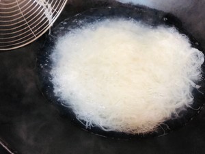 米粉提前15min泡发,准备一个锅烧热,煮3min左右。用碗装着备用。