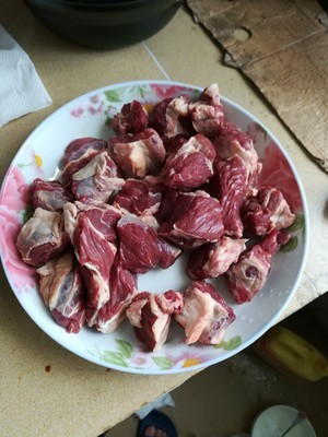 新鲜牛腩切大块,如果带有牛筋的话,吃起来更加爽