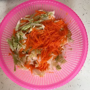 半个红萝卜抽丝,包菜切丝