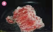 放入化冰后的羊肉片,迅速划散翻炒,加入料酒