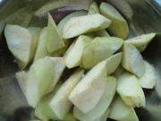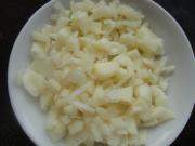 7.茄子去皮切滚刀块,调少量盐煞一下水。