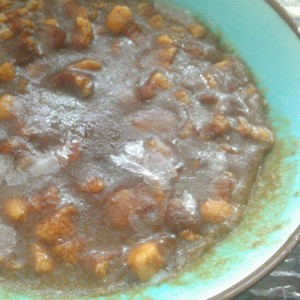 热锅加油,将腌制好的五花肉翻炒至5分熟,加水一碗及老抽一匙(老抽只是让五花肉上色,也可不加),冰糖2小颗,一起煮至五花肉软烂上色。
