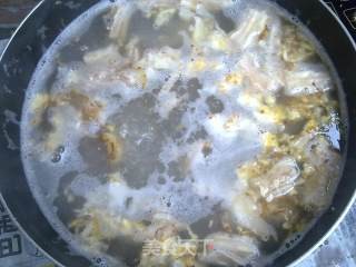 煎鸡蛋,这个是汤奶白的重点,鸡蛋要煎得稍微干一点,有很浓的蛋香味