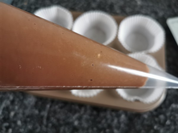 装入裱花袋,均匀的挤到模具里