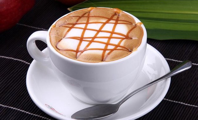 立刻倒入热牛奶,搅匀。加入焦糖巧克力,搅匀。