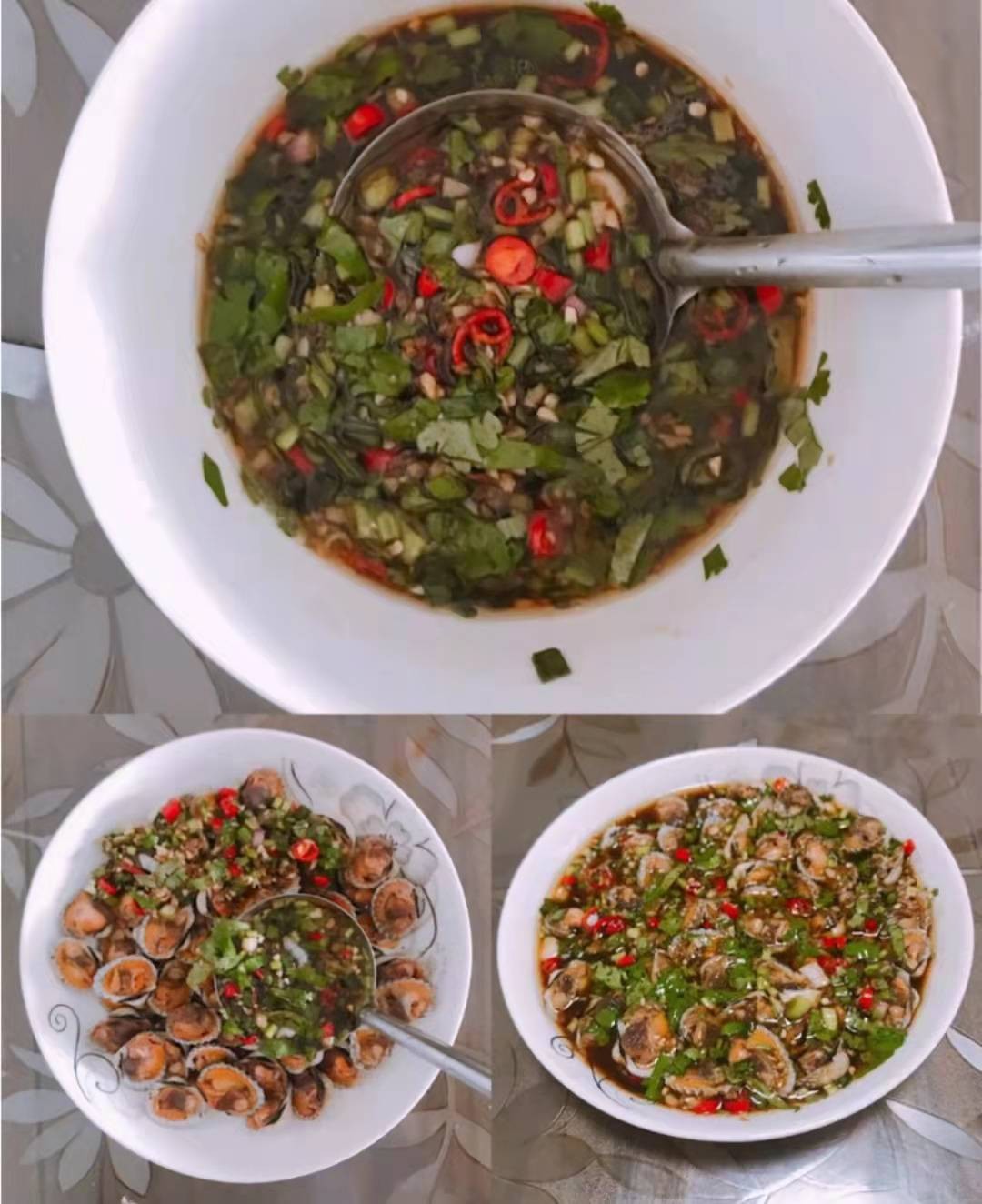 把酱汁淋在刚放置血蛤碟子里,淹没血蛤,用保鲜膜封盘,放冰箱口感会更鲜甜,20分钟后就可以吃了。