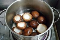 洗干净的香菇放入沸水中焯水,让香菇变软。