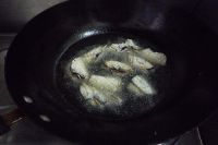 炒锅放足量油,烧制七成热,放入拍好淀粉的香菇下锅炸制。