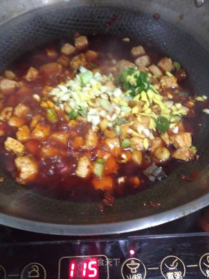 将配菜以及猪肉放入锅中炒熟做卤