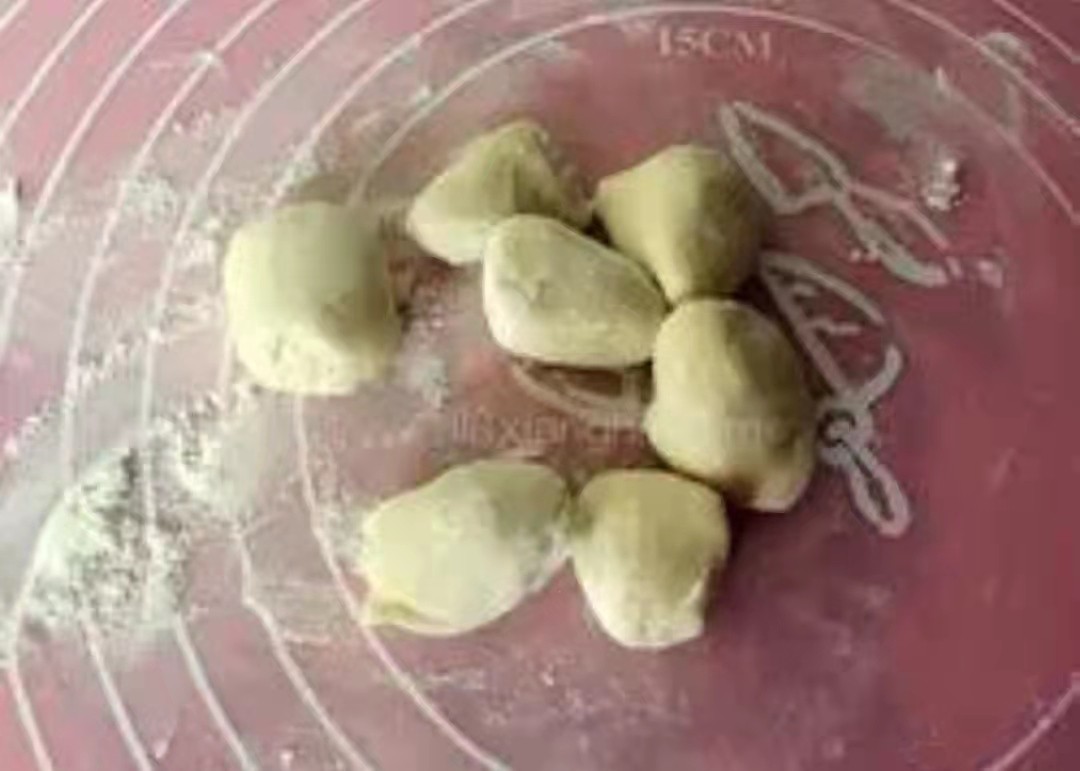 面粉加入适量牛奶和成面团静置二十分钟揉成长条