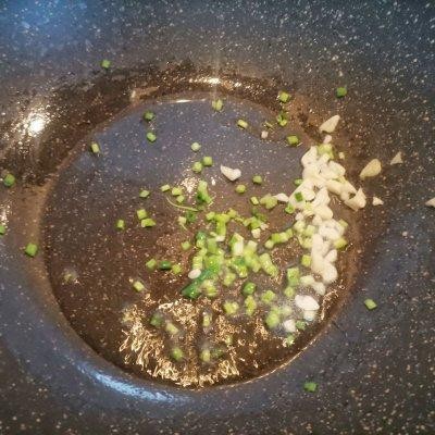 锅内倒油葱蒜下锅炒香