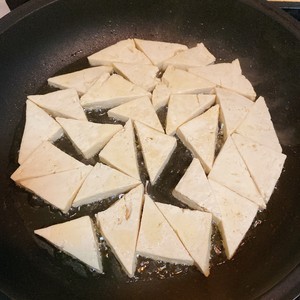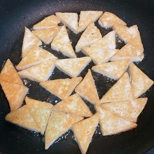 中小火将豆腐两面煎至微黄