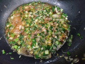 将葱,酱油,蚝油放入锅中翻炒熬制