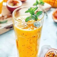挖出百香果果肉并倒入出品杯;