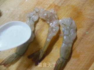 鸡蛋事先在碗中打散成蛋液,虾球放入沾满蛋液。