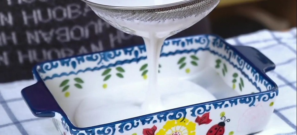 蒸碗底部垫上一层不粘纸,将面浆过筛入碗中,这样口感会更细腻