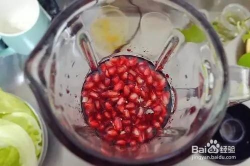 榨汁机内放入血橙和石榴粒,倒入适量饮用水,按键榨成汁