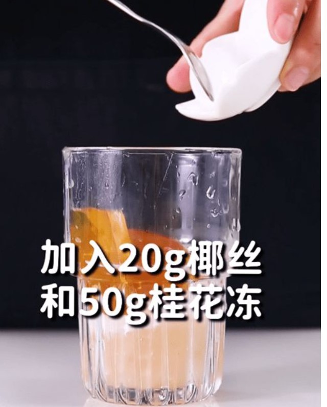 然后再加入20克椰丝和50克桂花冻备用