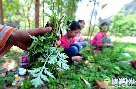 从山间田地摘取新鲜健康的野菜和青稞,进行清洗。