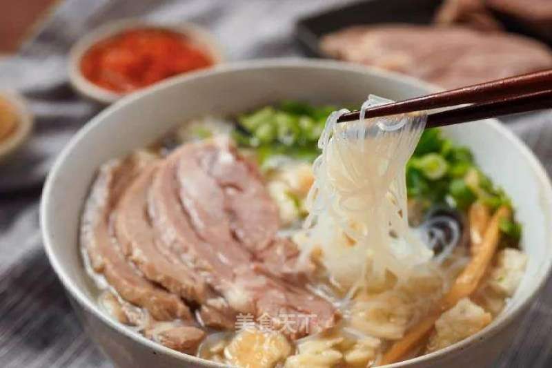 起锅倒入一大碗上文中的羊肉汤,大火煮沸后放入发好的黑木耳、黄花菜和馍丁,再次煮沸后,转小火煮2-3分钟,下泡软的绿豆粉丝煮1分钟,加适量白胡椒粉和少许盐调味,关火盛出。