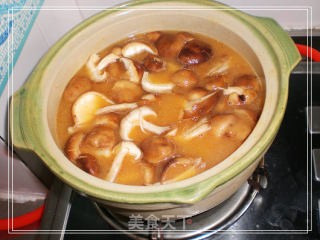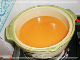 砂锅里放入混匀的酱汤和淘米水加盖中火煮开后小火煮15分钟