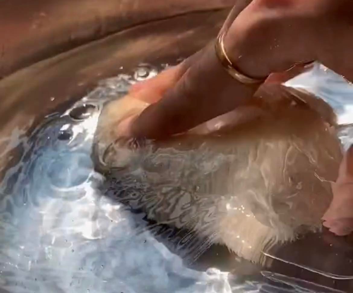 准备好3个猴头菇,将猴头菇装入碗中,加入2升水,然后加入3勺盐,将猴头菇浸泡30分钟。把猴头菇稍微搓洗一下,然后挤干水分