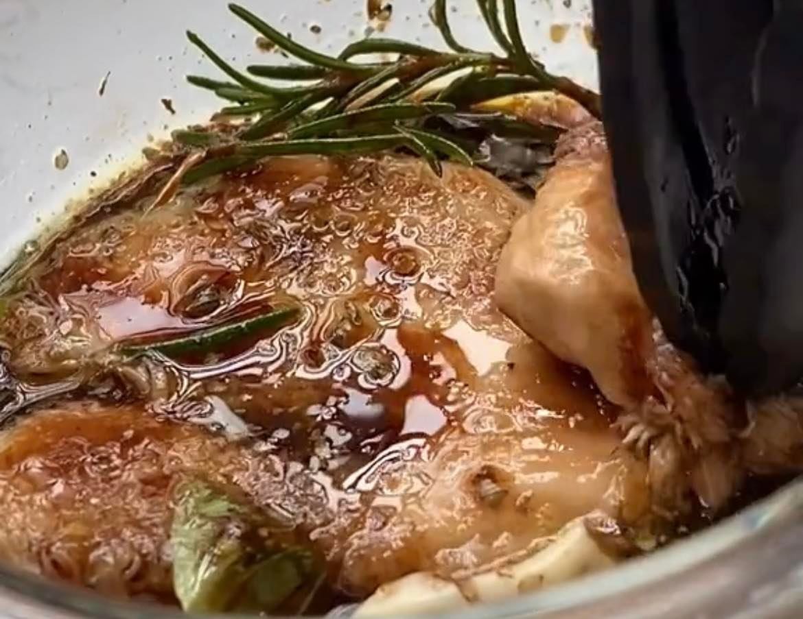 把所有调料跟猴头菇倒在一起,搅拌均匀,腌制1个小时