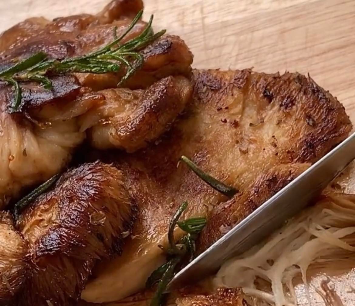 炒锅加中加入橄榄油,油温6-7成热放入猴头菇开始煎,煎到两面发黄,关火捞出来。