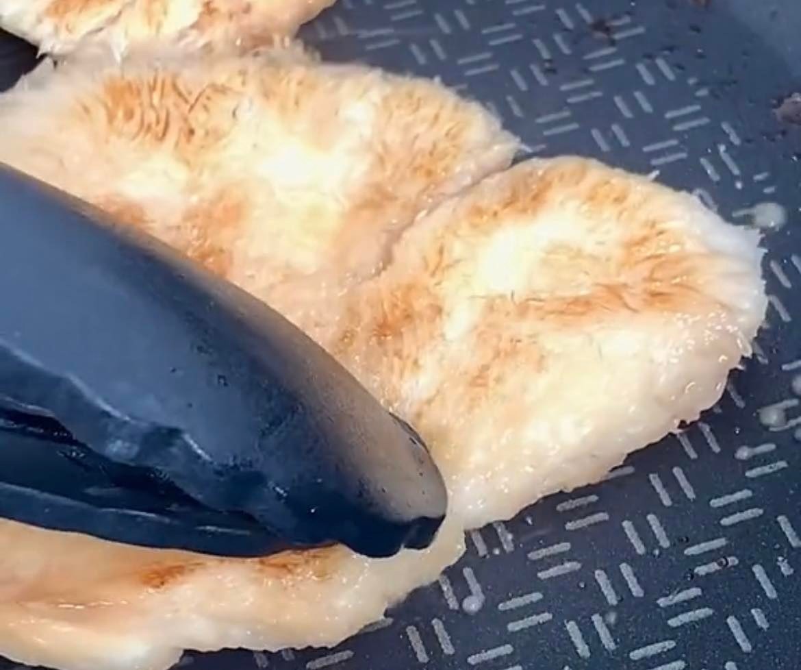 平底锅煎猴头菇,继续煎,直到水分蒸发