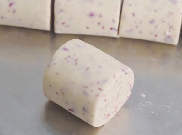 搓成长条后,切去两端,再切成4厘米一段,摆上蒸盘