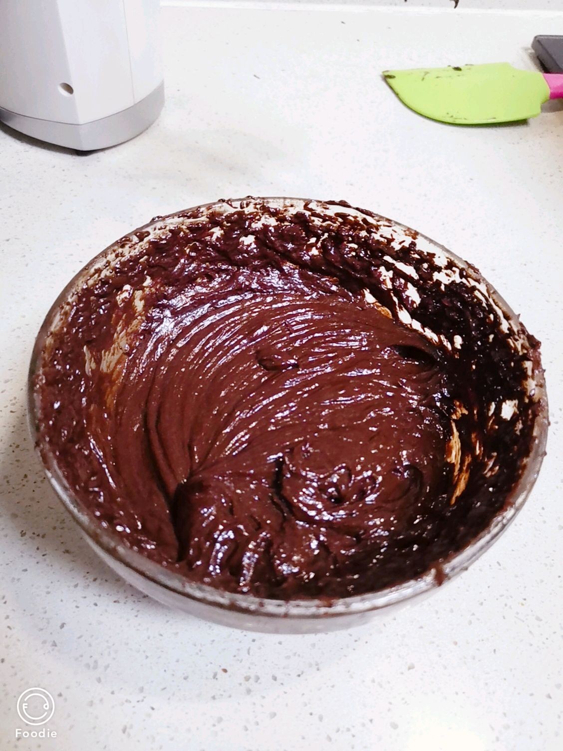 黄油分三次加糖30克打发,巧克力65克隔热融化,混合成巧克力糊,蛋黄分三次加入巧克力糊变成巧克力蛋黄糊,蛋白加30克白糖打发,三分之一蛋白加入巧克力蛋黄糊,再加入一半的面粉,如此重复全部自上而下搅拌好,倒入模具、震出气泡后放入烤箱倒数第二层170度35分钟
