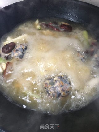 爆香后加入适量的开水及卤水包,待水开后。