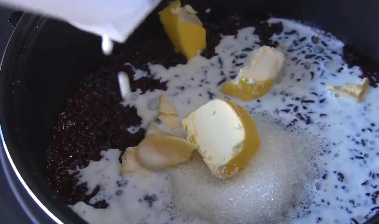 蒸熟后趁热加50g白糖、30g黄油、20g炼乳、25g牛奶,翻拌均匀
