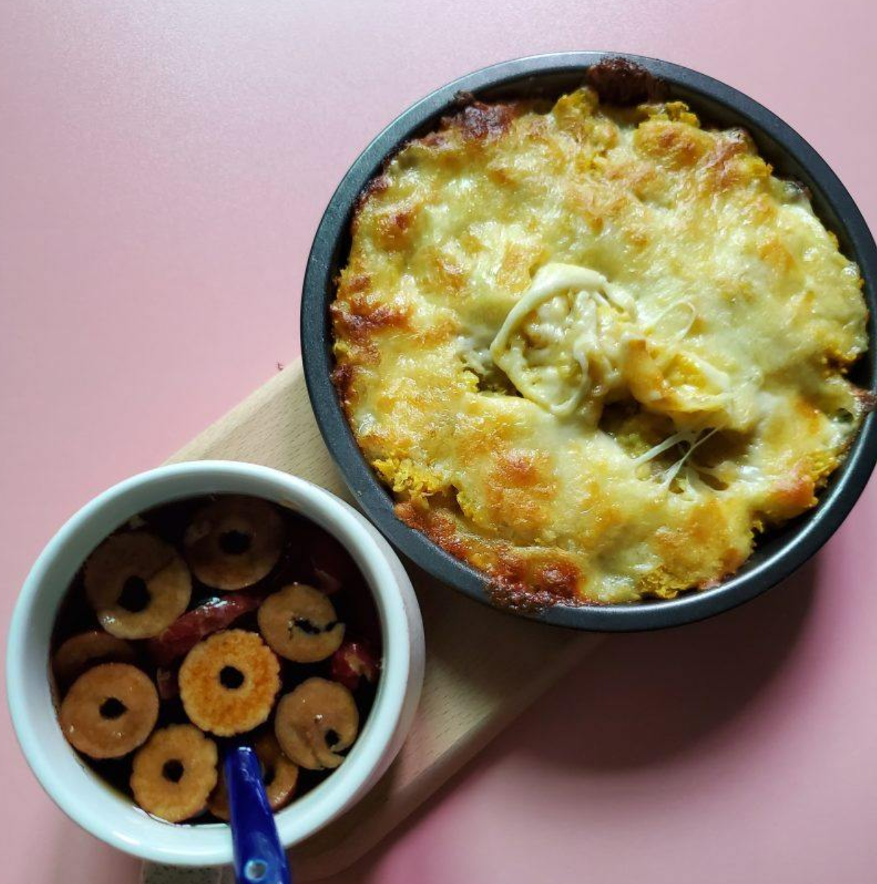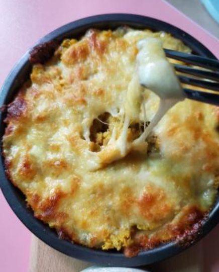 烤箱预热180度5分钟,放入后调210度15-20分钟,看到芝士溶化表面金黄,时间到,取出即可。
