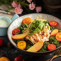 将搅拌好的酱汁与切好的食材搅拌在一起,进行摆盘,如需外带,则单独包装