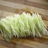 黄瓜去皮切丝。